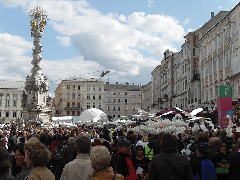 “Klangwolke” is part of the Ars Electronica Festival. Its anniversary edition featured a large participatory parade in which citizens animated oversized animal puppets, creating a moving procession that quickly became a public favourite. Read More